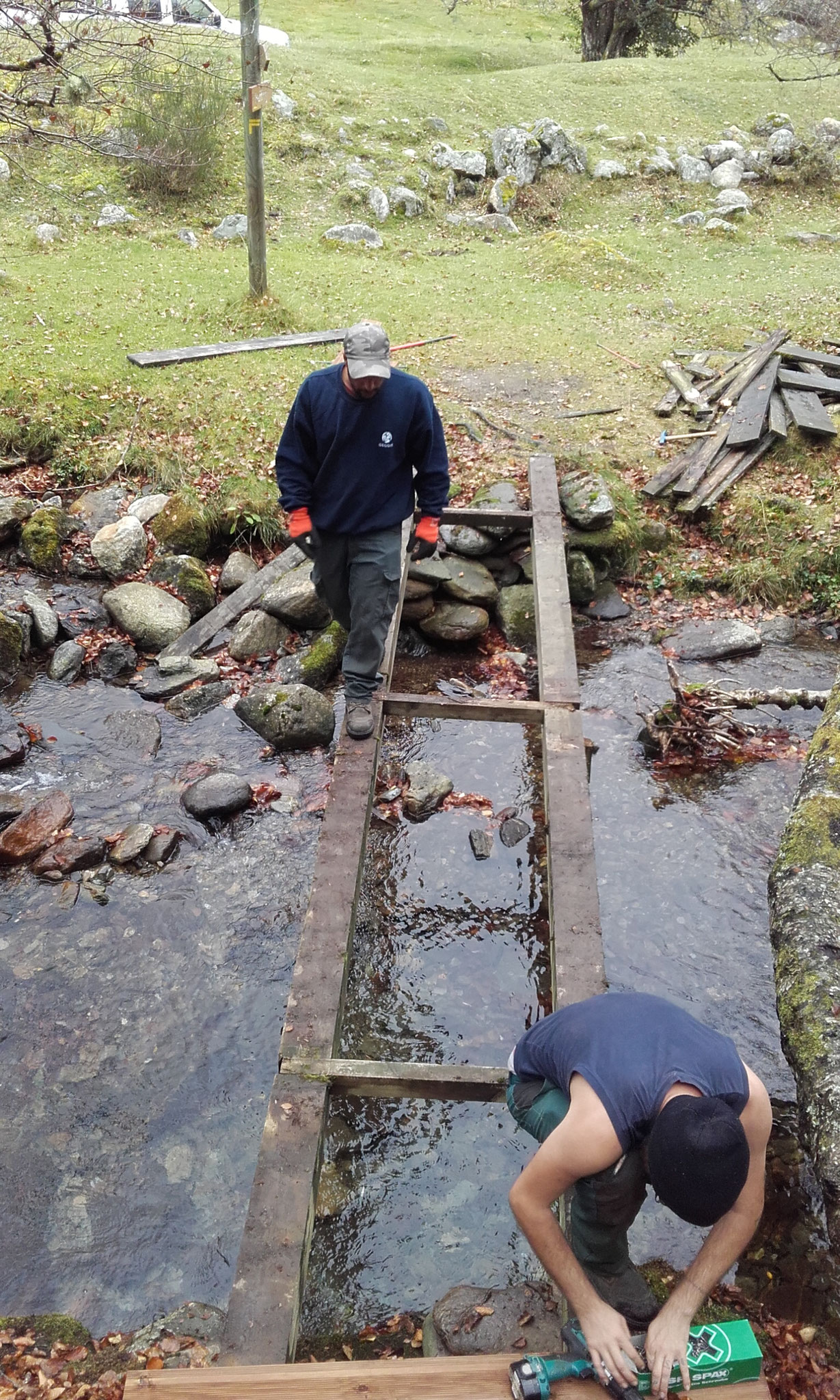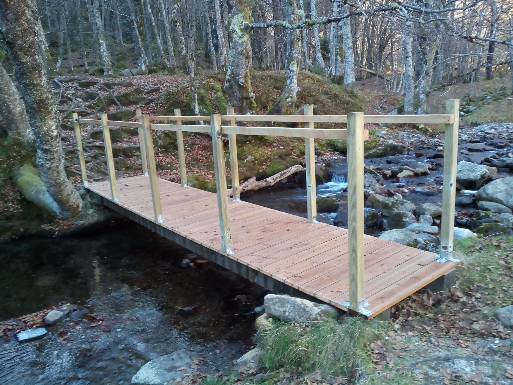 Déroulement du chantier. La passerelle enjambe le ruisseau de la Courbière à Rabat Les Trois Seigneurs.