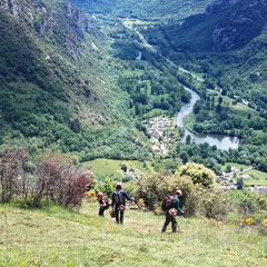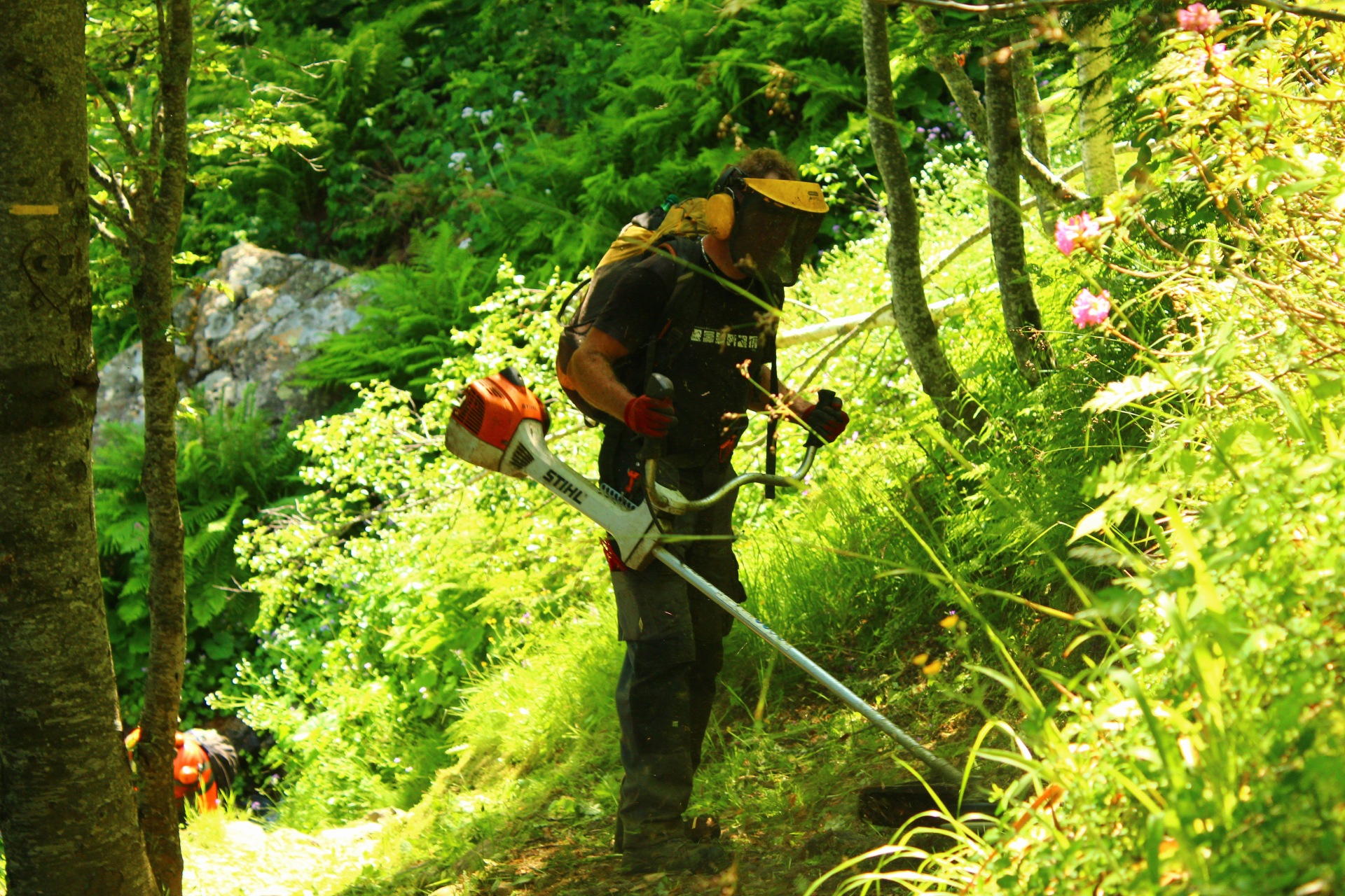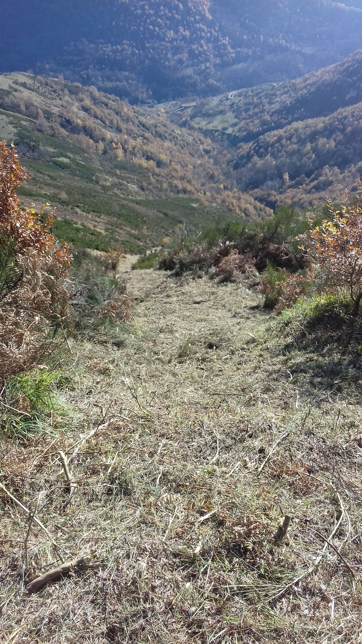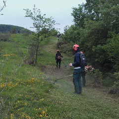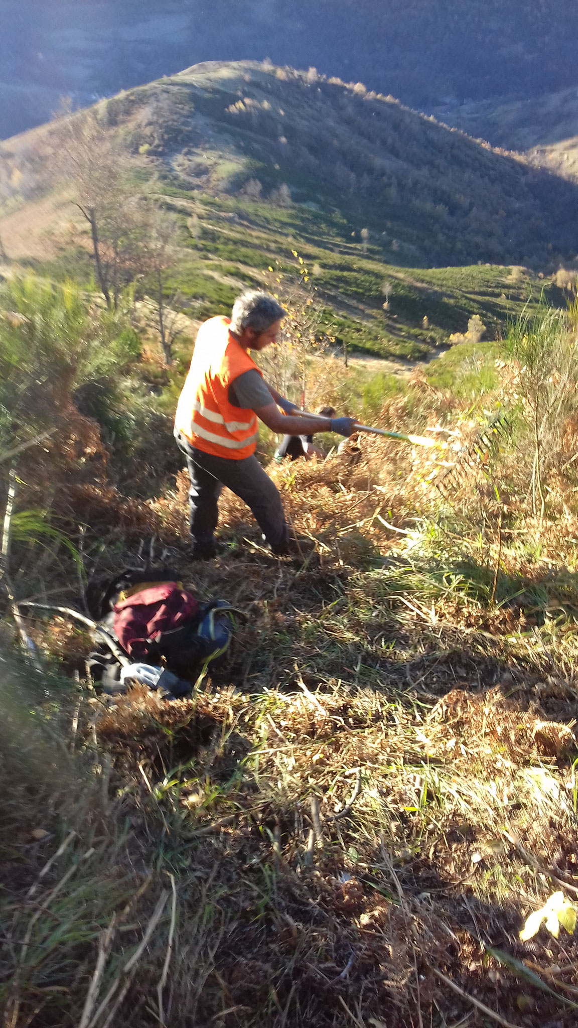 Travaux d'entretien des espaces naturels sur le Clot de la Carbonnière, situé à Ornolac Ussat Les Bains . Chantier à l'aplomb de l'Ariège.