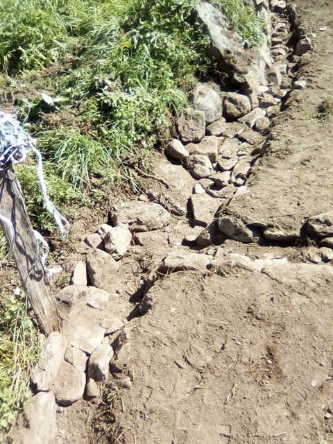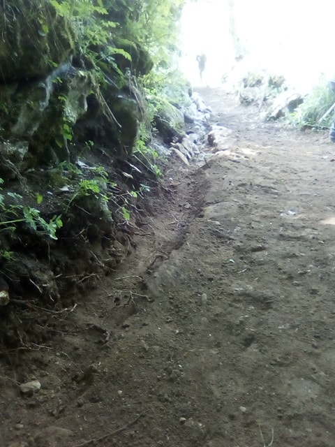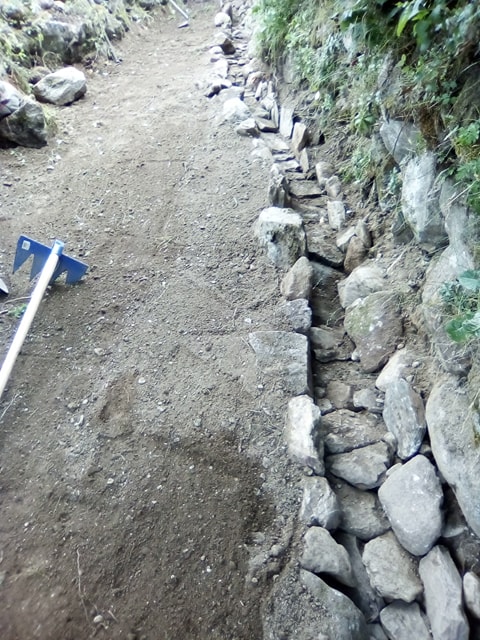 Les sentiers seraient repris par la pente et la végétation s'ils n'étaient pas entretenus. Terrassement et fossés drainants