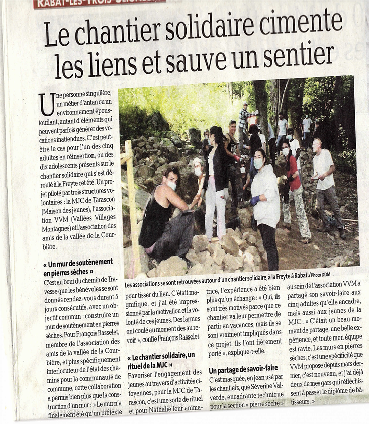 «nous travaillons autant que possible avec les entreprises d'insertion. (...) Nous avons du matériel, comme les véhicules qui sont amortis, qui n'ont plus de valeur comptable. Nous sommes un acteur de la vie locale.» Philippe Pujol, président de la Com-Com de conclure : «La Com-Com est un partenaire très important de VVM, car cette structure sur le territoire est très importante, que ce soit pour l'entretien des sentiers de randonnée, ou que ce soit pour les communes sur des travaux spécifiques. L'association, nous devons rappeler a un taux de réussite en insertion très important. Pour l'ensemble des élus de la communauté des communes, on ne doit pas laisser les gens au bord du chemin. Notre volonté est de développer l'emploi, l'insertion en est un moyen.»
